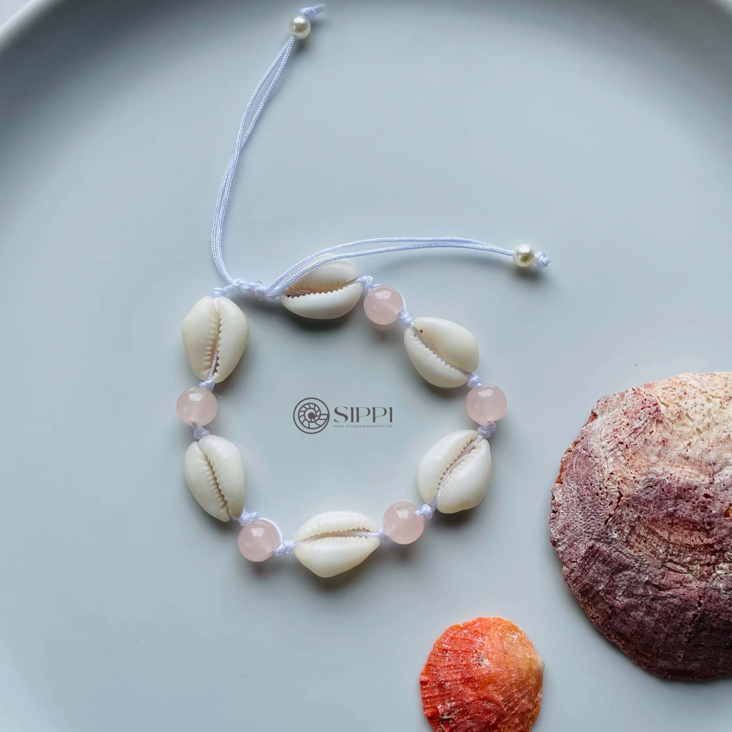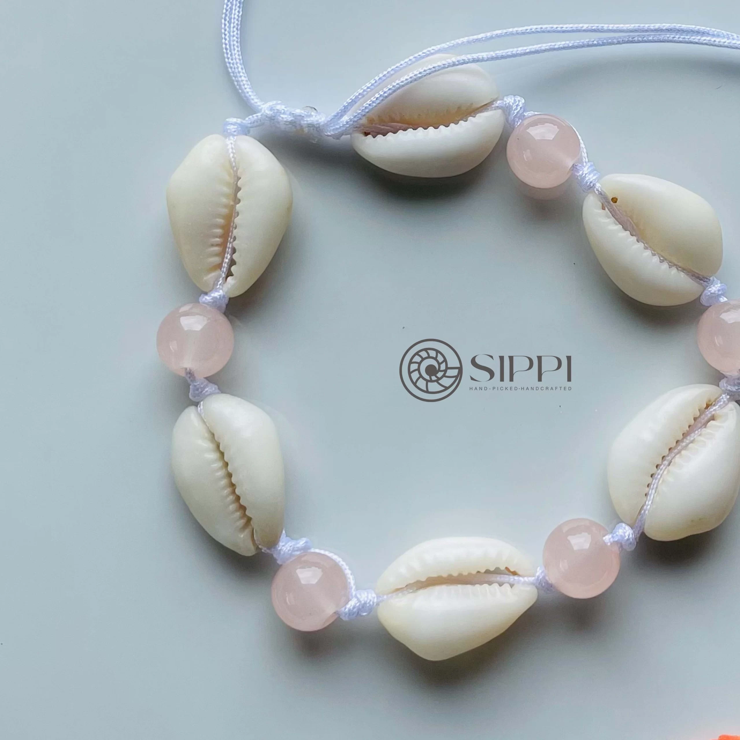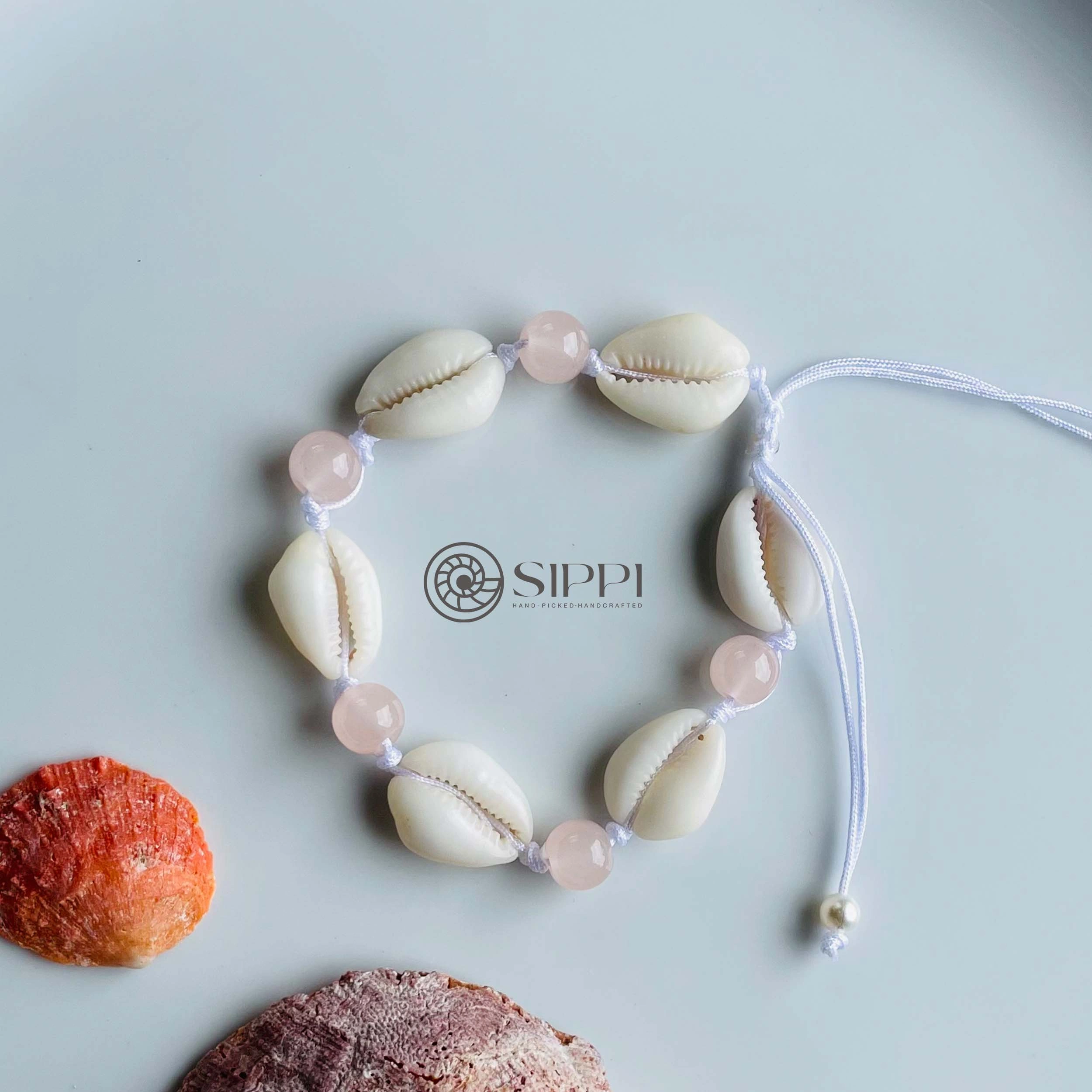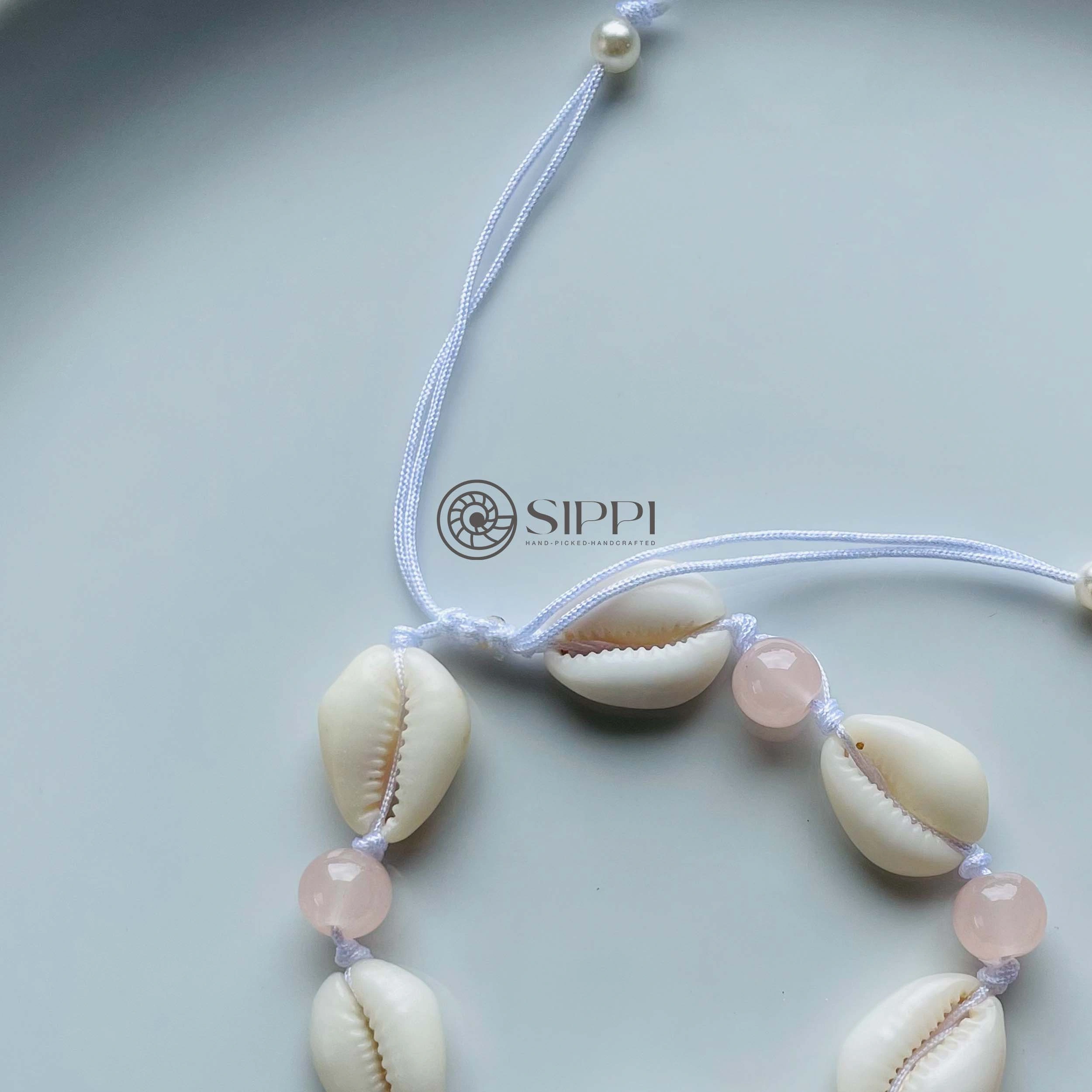 Bring soft, tropical elegance to your style with the Cowrie Shell Anklet with Baby Pink Glass Beads. Handmade by Sippi Ceylon, this anklet pairs an authentic cowrie shell with delicate baby pink glass beads, creating a light and charming beach-inspired accessory.