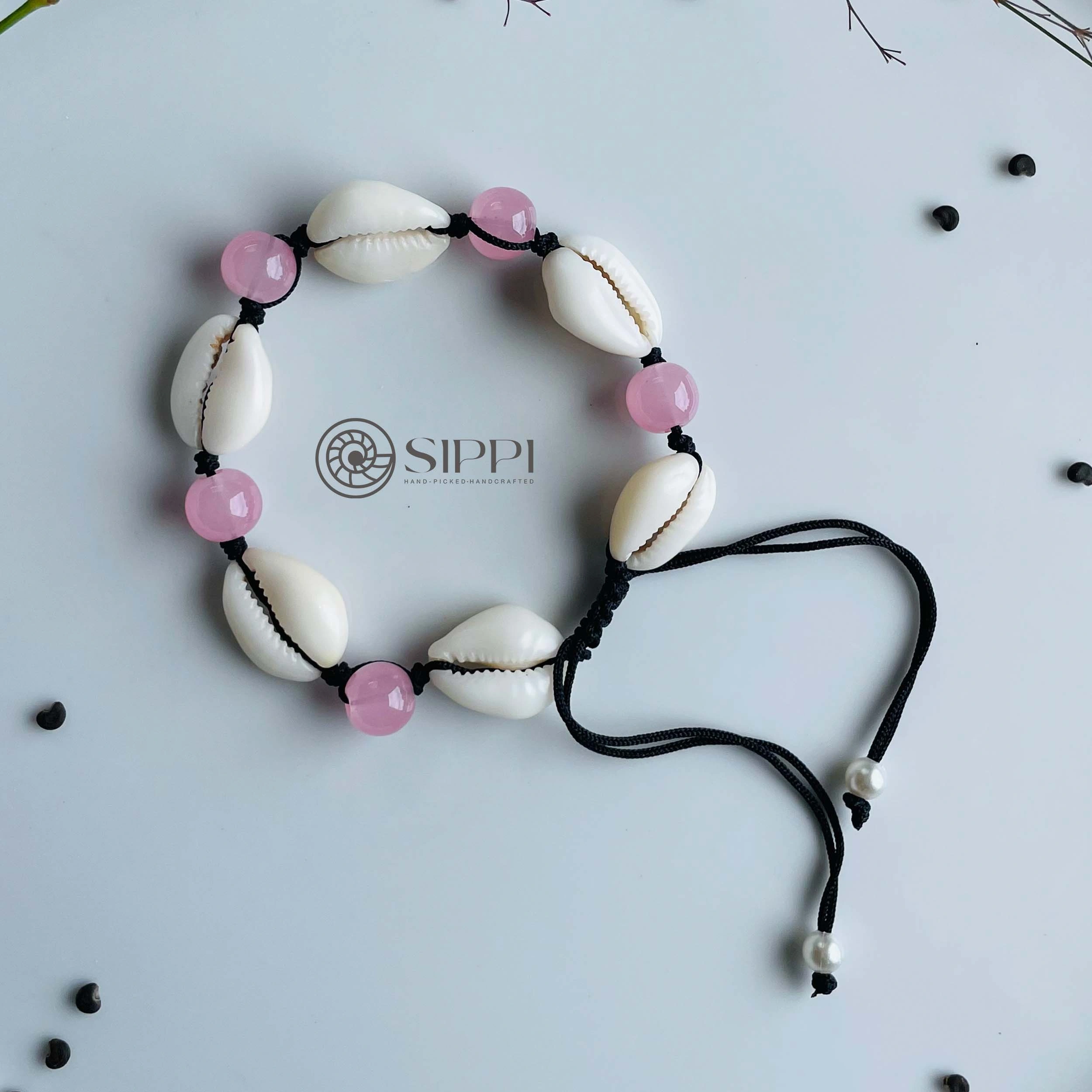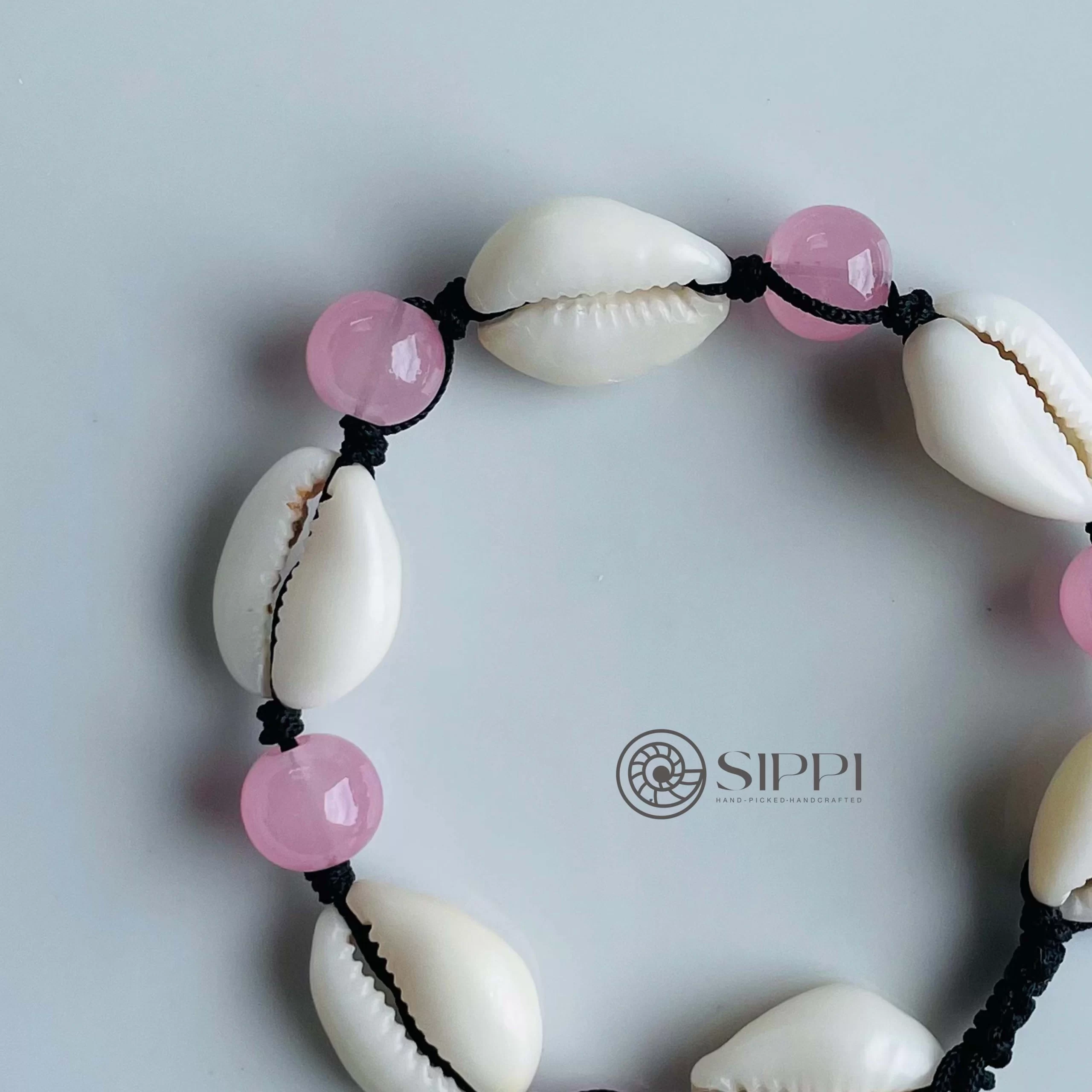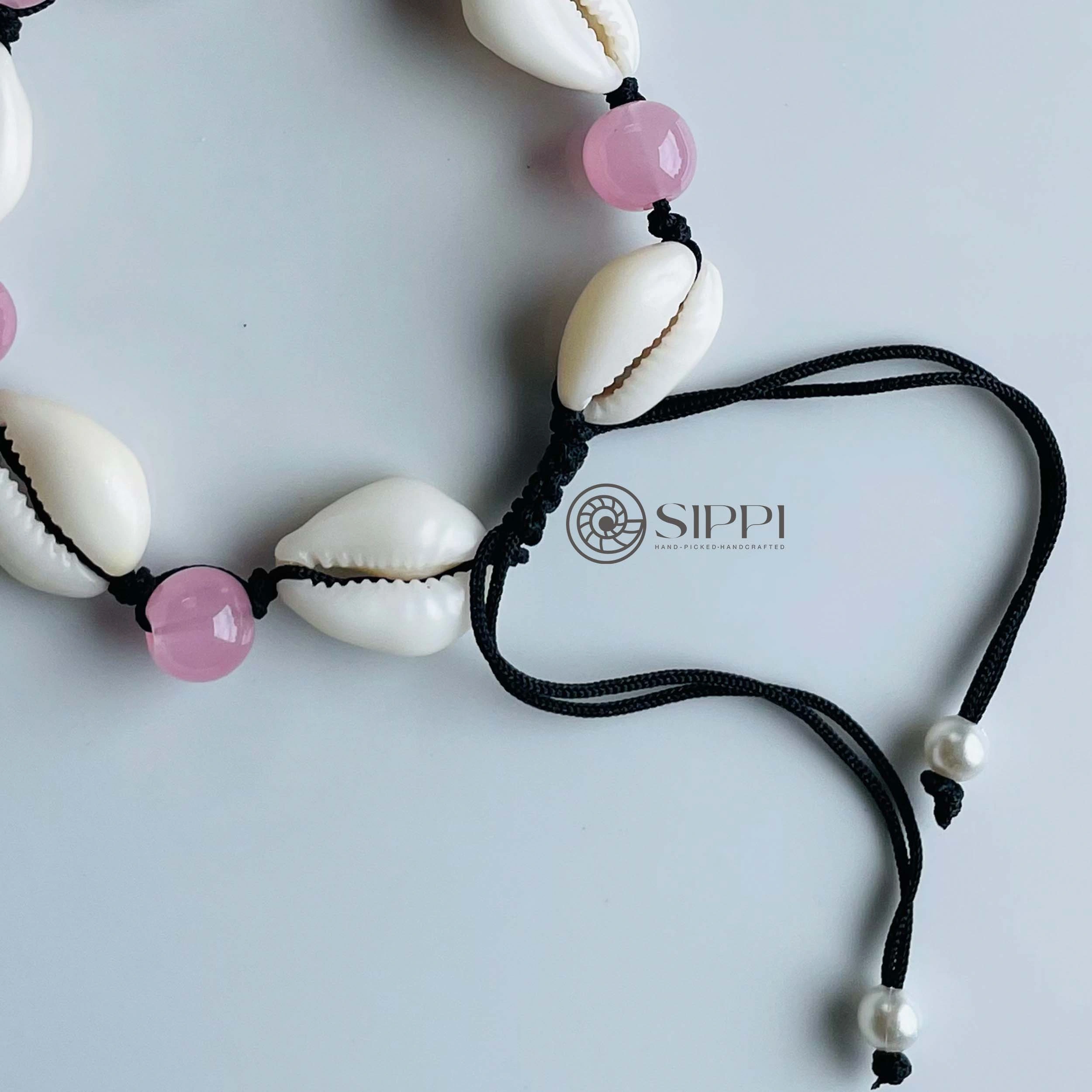 Add a touch of coastal romance with the Cowrie Shell Anklet with Rose Color Glass Beads. Handmade by Sippi Ceylon, this anklet combines an authentic cowrie shell with delicate rose-colored glass beads, creating a charming accessory that blends natural beauty with soft elegance.